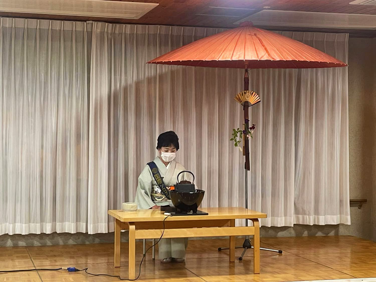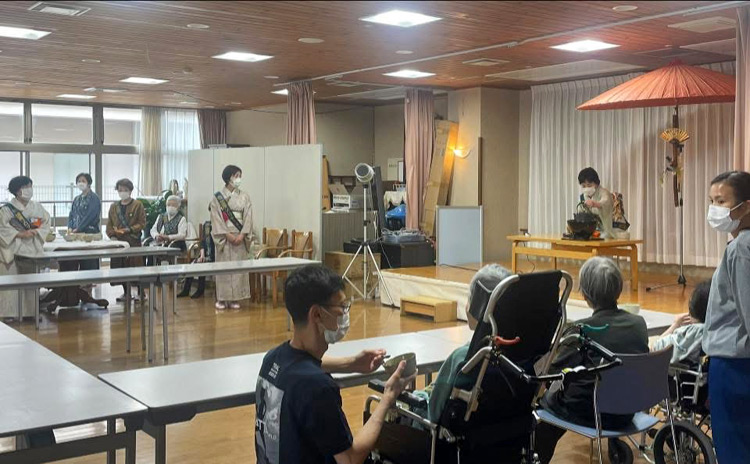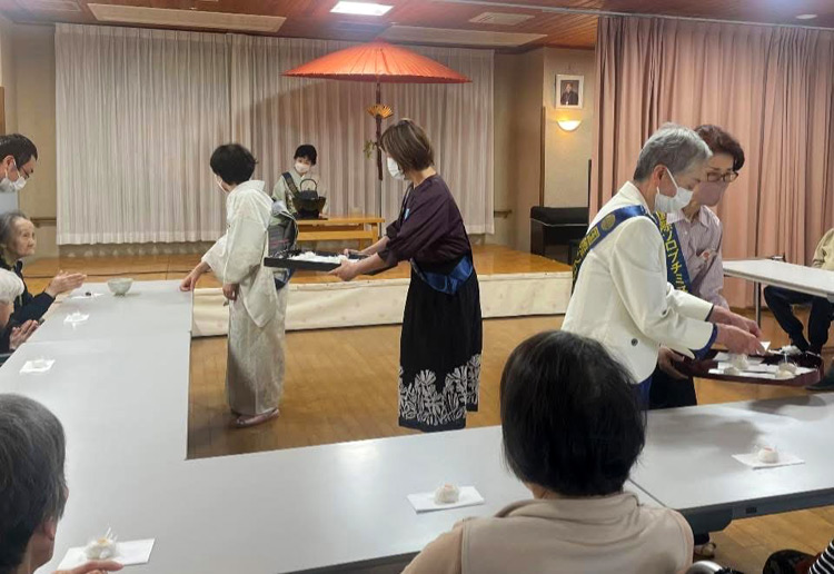 令和7年5月30日(金) コロナ禍で開催をみおくっておりました"野点の会"を今年は6年ぶりに開催する事が出来ました。一部の入所者の方々ではありますが直接お話が出来、お点前の披露、そしてお菓子とお抹茶を出させて頂きました。入所者の皆様、これからもお元気にお過ごしください。そして来年の"野点の会"で又お会い出来る事を楽しみにしております。
