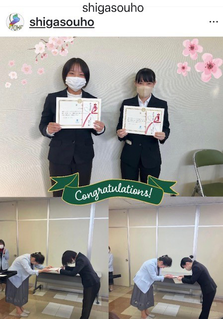 4月17日、アメリカ連盟プログラム「夢を生きる:女性のための教育・訓練賞」および日本中央リジョンリジョナルプロジェクト「専門学校女子学生支援金」にご応募頂きました滋賀県立総合保健専門学校のお二人にクラブ賞を贈呈いたしました。大変喜んで頂き学校のインスタグラムに載せて頂きました。