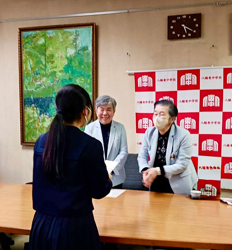 3月13日から3月27日にかけて、就学支援金の贈呈を行いました。 就学支援(困窮家庭の中学3年生へ高等学校への入学時に一時金を支援)も12年目を迎えました。 今年は近江八幡市内の4中学校2名ずつ、近江八幡市学習室1名、守山市学習室「キャンパス」2名の計11名に就学支援金を贈呈しました。 それぞれの生徒さんが将来の夢を語ってくれました。