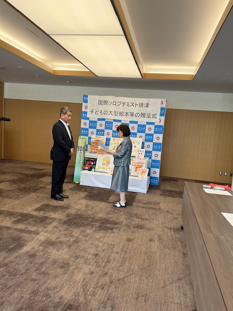 2025年6月26日 焼津市役所にて大型絵本贈呈式が執り行われました。 2007年より継続事業として行われている大型絵本寄贈ですが、今回で235点となります。 市内の幼稚園、保育園をはじめとしてさまざまな子育ての場で活用していただいています。