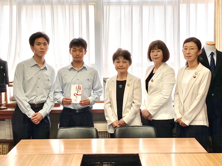 2025年6月25日午後3時45分から宮津天橋高校建築研究部を訪問しました。会議室にて高尾学舎長、建築科担当先生2名、生徒2名で会長挨拶後、生徒2名に支援金の贈呈を行いました。学業が忙しい中、空き時間・夏休み等を活用し、SI宮津とのコラボ奉仕活動の作品制作に励んでいて、今回は持ち運びができ、積み重ねて利用できる平均台を制作している。地域の保育園に8月に寄贈する予定です。