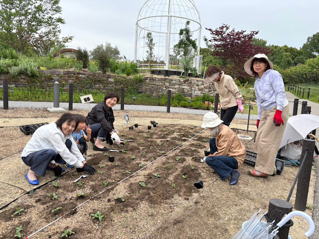2025年5月24日(土)東山植物園第2回「花いっぱいプロジェクト」に会員6名が参加。SI名古屋-栄の区画割り当て花壇にひまわり約200株を植え付けました。