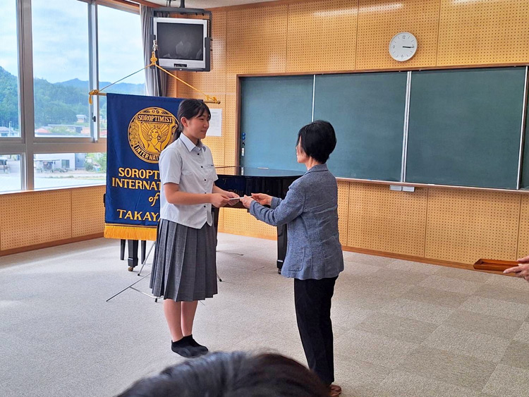 高山西高等学校Sクラブ入会式と支援金贈呈