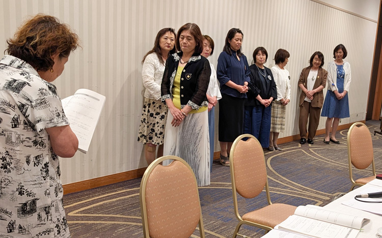 SI長野今期最終例会が22日行われ、年間議事録書について、各担当委員長らが報告。このあと次期理事会メンバー及びデレゲートの就任式、新旧交代式(写真)が執り行われました。最終例会では、再来年の創立45周年に行う予定の事業について、現下の厳しい経済情勢や会員の減少などを背景にこれまで通りのやり方ではない、会員負担を減らしたり、内容の再検討をしたり、改善・改革の必要性があるとの方向で一致。会長がフロアの会員全員に発言の場を設け、それぞれが思うところを述べ、締めくくりにふさわしい最終例会となりました。