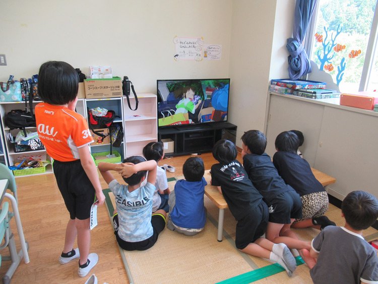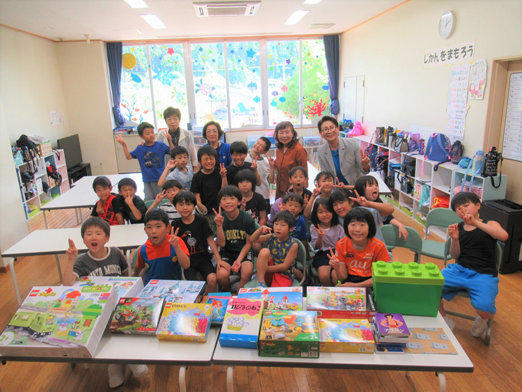 当日は、23人の児童が利用していて、児童代表から心温まるお礼の言葉があり、早速、みんなで贈呈品を開封して遊びはじめ、とても喜んでもらいました。