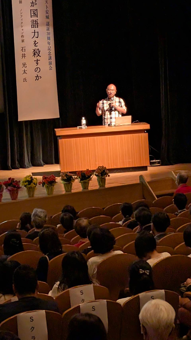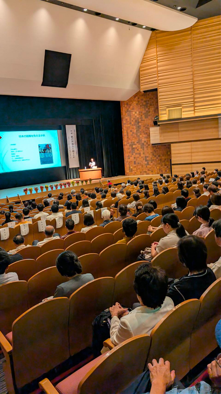 講師にノンフィクション作家 石井光太氏をお迎えし、「ルポ だれが国語力を殺すのか」をテーマに、2025/10/18(土)講演会を開催いたしました。話せない、書けない、読めないなど日々の会話や読書の中で身につくはずの言葉が、今の子どもたちから少しずつ失われている現状、そして「生きる力」をどうやって育てていけばいいのか、一緒に考えてみませんか、と投げかけられました。会場には安城市教育長をはじめ学校関係者の方々、Sクラブの生徒たち、父兄、姉妹クラブの方々にも足をおはこび頂きました。講演中メモを熱心にとっているかたの姿も多く見受けられました。講演後には「とても良い講演だった!」などの言葉を頂きました。30周年記念事業として、この講演会を開催できたことを感謝しております。