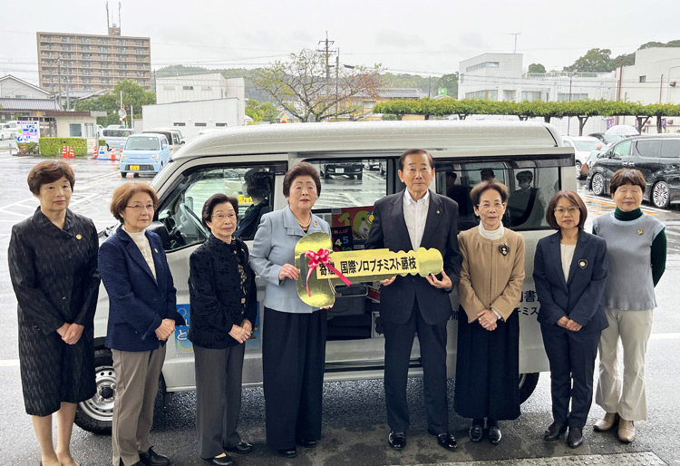 2025年10月22日、藤枝市役所において、絵本配送車 寄贈・出発式が行われました。国際ソロプチミスト藤枝は、2026年2月に認証30周年を迎えます。それに先立ち、2025年6月にIL VINOによるチャリティーコンサートを開催し、多くの方々にご来場いただきました。その収益金をもとに、藤枝市に絵本配送車を寄贈することとなりました。