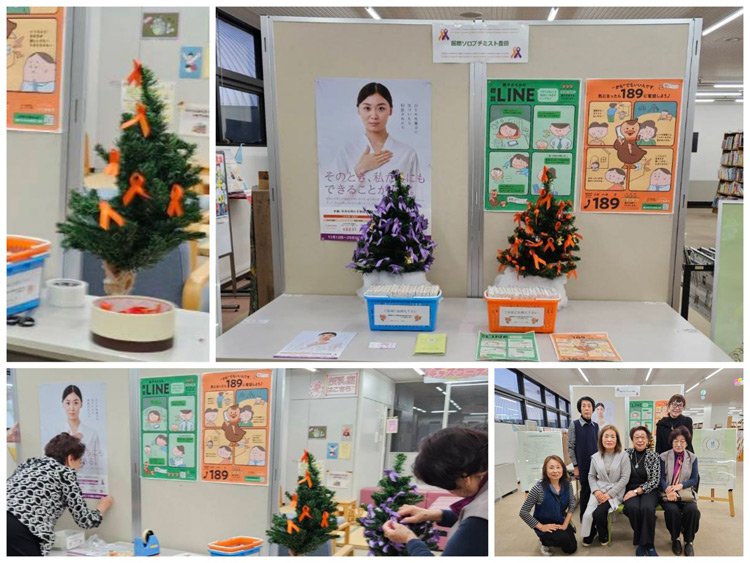 ソロプチミスト豊田は継続事業として、キラッ☆とよた(豊田市ジェンダー平等推進センター)のご協力で、産業文化センター2階にブースを設け、また、産業文化センター女性トイレ・受付、市役所受付(こども相談課・よりそい支援課・市民相談課)に「ホットラインカード」を入れたポケットティッシュを置き啓発活動をしています。