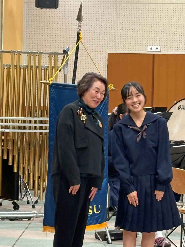 又、演奏会の後は、菊田会長より吹奏楽部部長大矢場一葉さんに支援金を贈呈致しました。