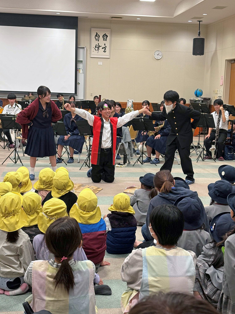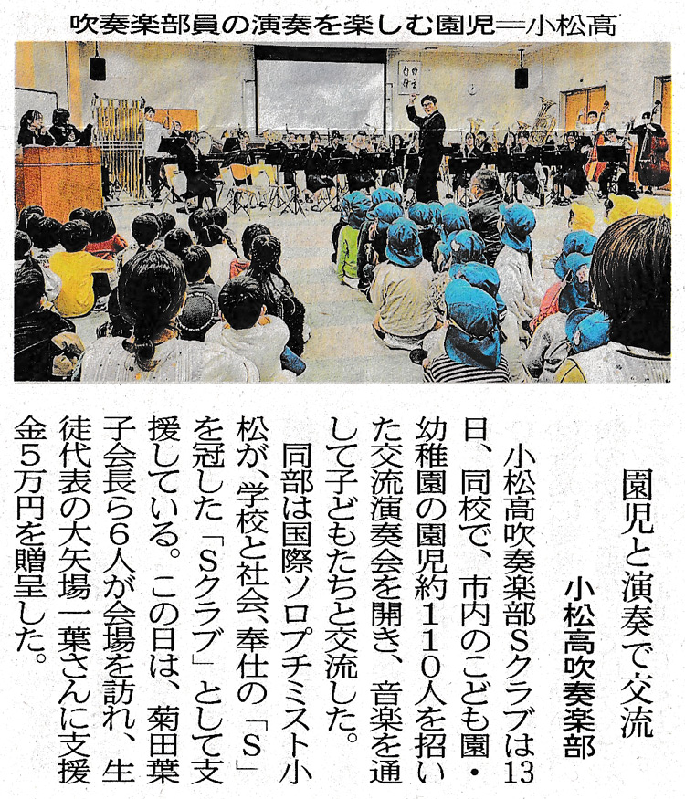 県立小松高等学校吹奏楽部Sクラブ 園児たちとの交流演奏会&支援金贈呈