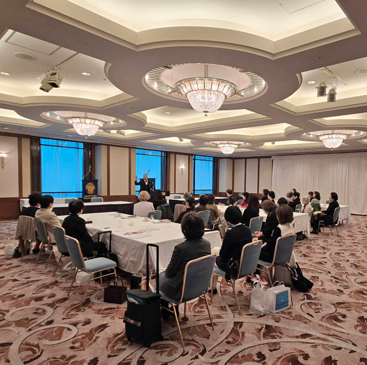 講演では、ウクライナやガザの戦争は日本から遠い問題に見えても、エネルギーや食料価格、安全保障を通じて私たちの生活に影響を与えることや、日本初の女性内閣総理大臣であり、世襲ではなく東京以外の大学出身である高市首相の誕生は、民主主義の健全性と東京一極集中への問題提起として大きな意味を持つと述べられるなど、幅広くテーマに沿ったわかりやすいお話をして下さいました。講演後の質疑応答では、教養を高めるためには「専門外のことに幅広く関心を持つこと」「偏差値に縛られない姿勢」そして「生涯学び続けること」が大切であることを教えていただきました。7名のビジター参加もあり、会員と共に学び合うこのような機会がメンバーシップにも繋がるようにと願います。