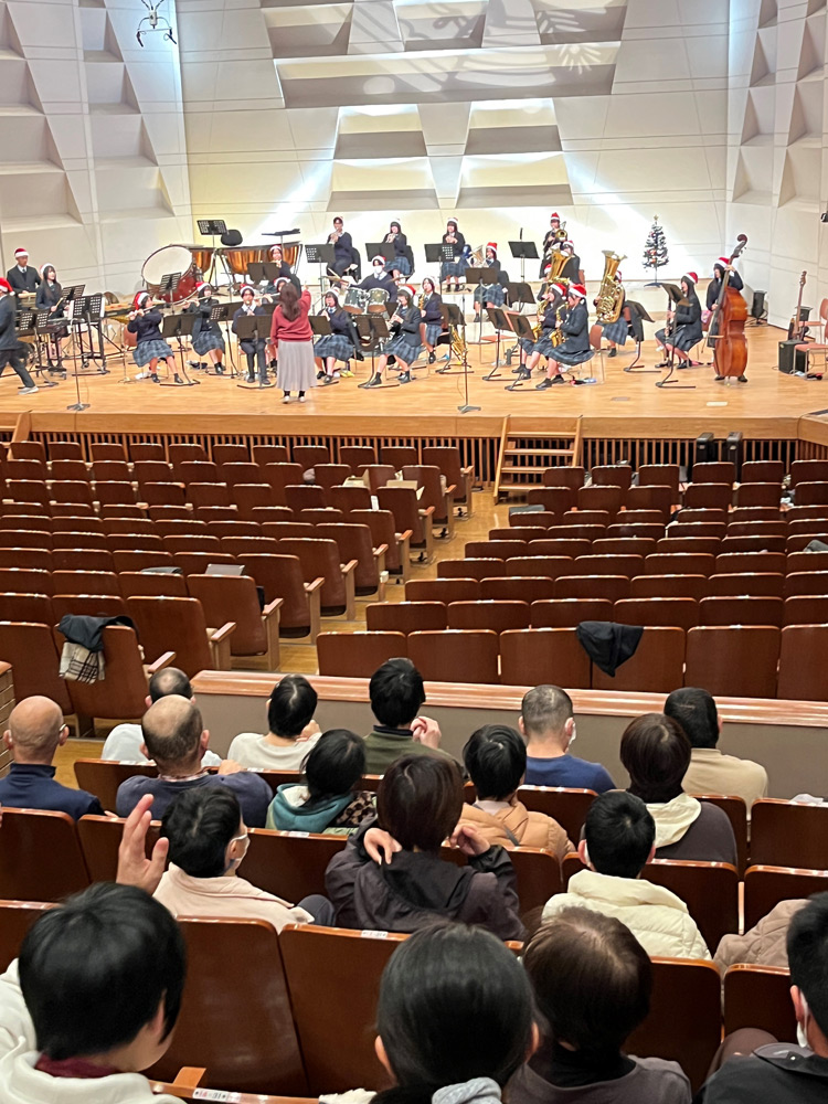 2025年12月23日 焼津市大井川文化会館ミュージコで、Sクラブ静岡県立清流館高等学校福祉部の計画によるクリスマスコンサートが開かれました。近隣の福祉施設2か所から40名程の方々をお招きして、吹奏楽部の演奏に聴き入りました。