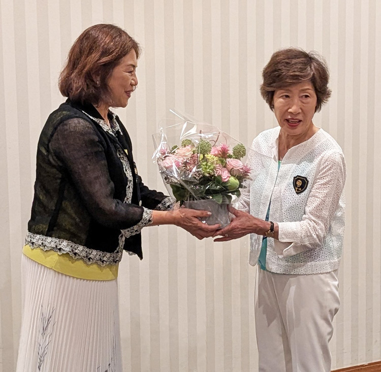 SI長野今期最終例会が22日行われ、年間議事録書について、各担当委員長らが報告。このあと次期理事会メンバー及びデレゲートの就任式、新旧交代式(写真)が執り行われました。最終例会では、再来年の創立45周年に行う予定の事業について、現下の厳しい経済情勢や会員の減少などを背景にこれまで通りのやり方ではない、会員負担を減らしたり、内容の再検討をしたり、改善・改革の必要性があるとの方向で一致。会長がフロアの会員全員に発言の場を設け、それぞれが思うところを述べ、締めくくりにふさわしい最終例会となりました。