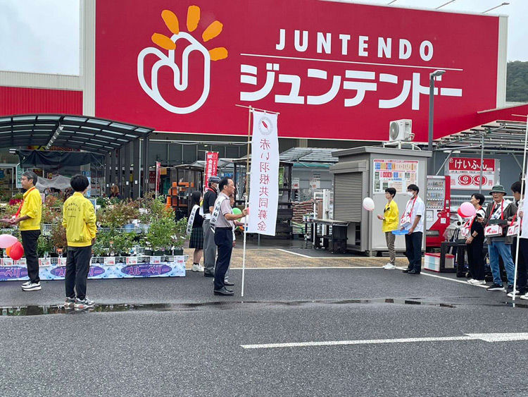 10/5(日) ホームセンター「ジュンテンドー西舞鶴モール店」にて、日星高等学校Sクラブの学生さんや福祉団体の皆さまと共に、募金を呼びかけました。