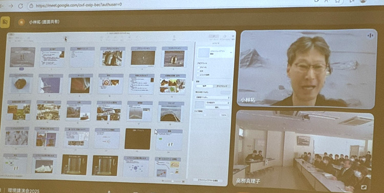 今年の基調講演は、オンラインによる山梨大学大学院総合研究部 生命環境学部環境科学科准教授 小林 拓先生による「南極から探る地球環境」でした。これまで、地球環境の変化を、気象・ごみ問題・生物多様性の損失など学んできましたが、今の「南極」で起きている変化は、周囲を循環する大気の流れや海が20年前に比べ、より一層深刻化していると知り驚きました。この講演の後、生徒さんたちの「『富山の環境』に関する継続した研究実践」は、そのことをより身近なものとして考えさせられ、環境保全に向けたアイデアも多々あり、支援させてもらう意義を強く感じたシンポジウムでした。