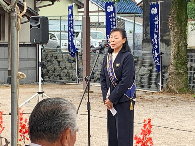主幹は国際ソロプチミスト大垣が務め、贈呈式、詩吟が行われ参列者が一人ずつ石碑に献花し遺徳をしのびます。