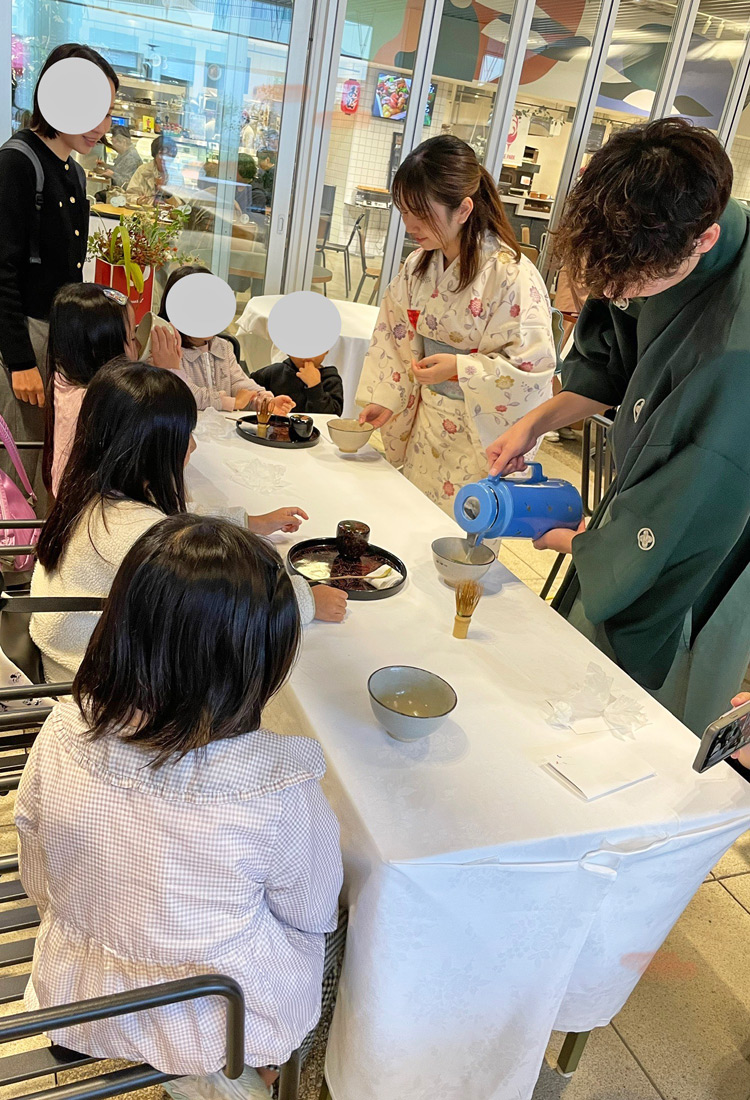 国籍を問わず、日本の伝統文化「茶道」に興味を持った子どもたちはお茶を点てる作法を体験し、「苦かったがすごくおいしかった」「泡立てるのが難しかった。またやってみたい」などと感想を伝えてくれました。