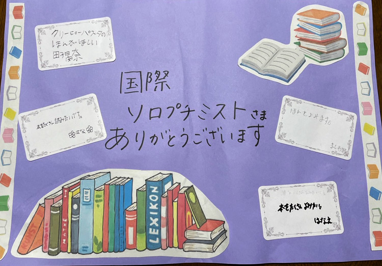 当日は校長先生、教頭先生、生徒会長と図書委員長が出迎えてくださいました。生徒さんの希望の本が購入できるととても喜んでいただき、お礼の言葉を言ってくださいました。図書館で本をゆっくり読むのがお気に入りの時間だそうです。
