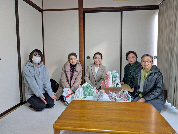このクリスマスプレゼントは毎年恒例の支援活動となっています。その他にも折々に会員の家庭菜園で収穫した野菜なども届けており、施設のスタッフの皆さんからは大変感謝されています。会員数が少なくなりましたが、私たちの出来る奉仕活動を楽しく続けてい行きたいと思っています。
