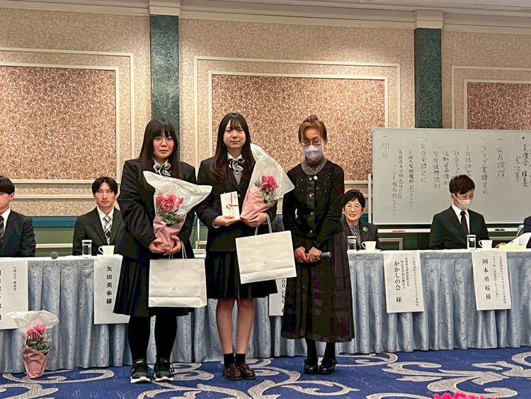 12月19日、プログラム例会として、クラブ賞および支援金授与式を行いました。出席者は、女性研究者賞・田中沙織氏(奈良先端科学技術大学院大学 教授)、社会ボランティア賞・岡本勇起氏、活動資金援助・特定非営利活動法人かかしの会、災害復興援助・SAR-DOG CWC、天理大学雅楽部Σソサエティーの佐藤浩司先生、矢田美歩さん、川口喜一郎さん、奈良県立宇陀高等学校こども・福祉科Sクラブの川嶋邦江先生、石田萌々花さん、奥峰優衣さんのみなさんです。それぞれの研究内容や活動について直接うかがうことができ、大変有意義なひとときとなりました。