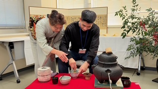 その後、実際にお茶を点てる体験を行ったり、生徒さんたちに磐田の好きな場所や普段飲んでいるものを聞いたり異文化交流もできました。