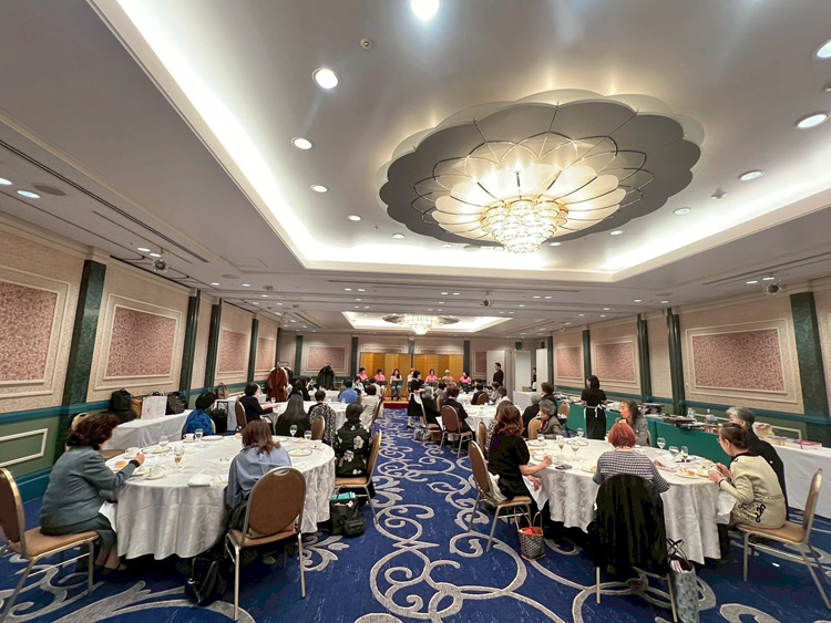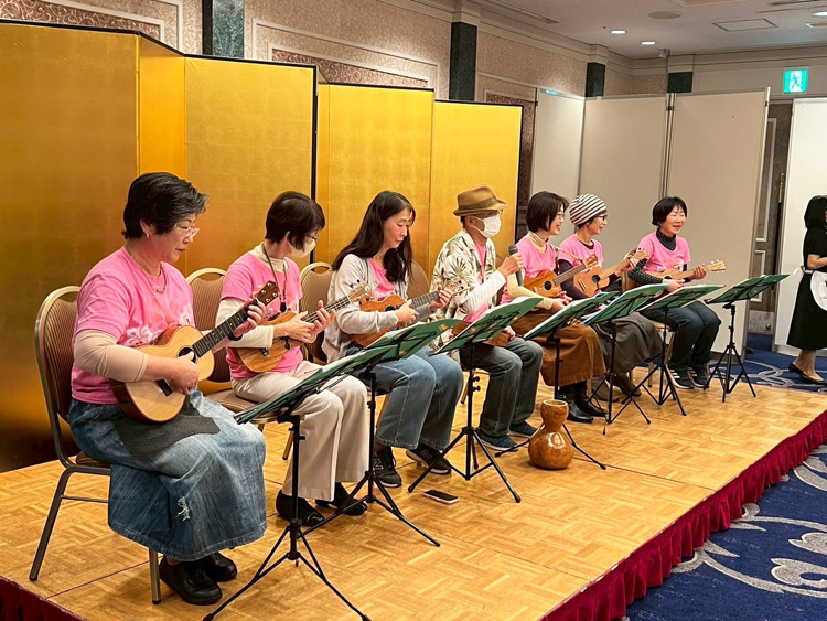1月23日、国際ソロプチミスト奈良-まほろばの新年会が開催されました。厳しい寒さの中でしたが、38人で例会と新年会を迎えることができました。例会後の新年会では、奈良地元のウクレレサークル虹の皆さんによる演奏があり、ハワイアンからクラシック、そして参加者全員で歌う時間まで、心癒されるひとときを過ごしました。続いて恒例のバザーでは、持ち寄り品が早い者勝ちで次々と売り切れ、大いに賑わいました。最後のくじ引きでは、中宮寺御門跡である日野西光尊会員から心のこもった扇子、ホテルの食事券の特賞もあり、心華やぐ新年のスタートとなりました。今年も力を合わせ、奉仕活動に取り組んでまいります。