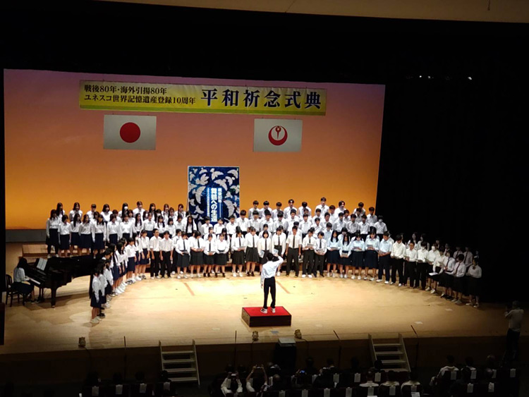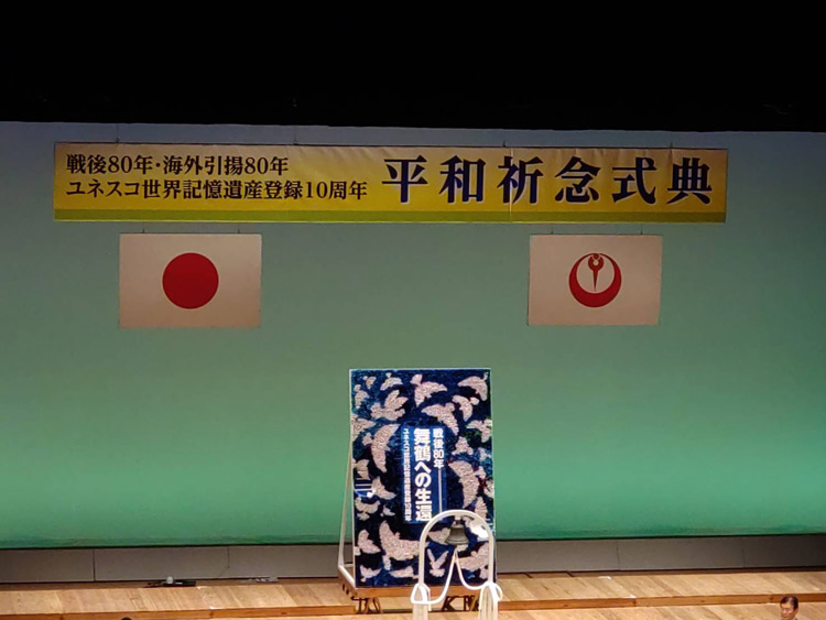 今年は戦後80年、海外引揚開始80年の節目の年です。10月12日に開催された平和記念式典では、舞鶴引揚記念館の学生語り部による司会、市内小学生の平和のメッセージ、中学生による「引揚者を迎える歌」の合唱など、若い世代が活躍し『次世代による継承』が実現されていました。