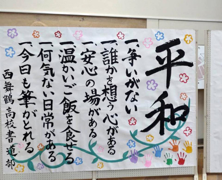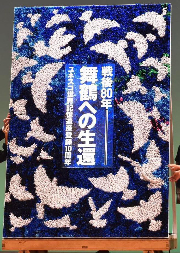式典では、2万羽を越す折り鶴で描かれた「折り鶴アート」が披露されました。私たちSI舞鶴も会員一丸となって1500羽を折り、平和のシンボル制作に参加しました。